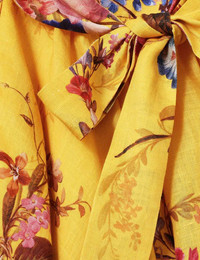 ITEM DETAILS The Patience Midi Dress in Mustard Floral from our Resort Swim 2026 Collection. A linen midi dress featuring a round neckline, midriff cutout with bow waist tie, finished with an invisible centre back zip closure and heavily gathered skirt. - Linen fabric - Ruched bodice with back boning - Keyhole cutout at midriff - Fabric self-tie belt - Invisible zip closure at centre back - Functional side pockets - Lined bodice Style Code: 6460DRS264 SIZE DETAILS 0P 0 1 2 3 4 Length 45.5 49.5 50 50 50.5 51 Bust 30.5 33 35.5 37 39.5 41 Waist 25 27 28.5 30.5 32.5 34.5 Fitted at the bodice, relaxed through the waist and legs This garment fits true to size Available in size 0P, suited to clients who are under 5'3"/ 160cm Model is 5'9.5"/178 cm, bust size 32C/10C and wears a size 0 Item measurements are in inches CARE INSTRUCTIONS Main: 100% linen; bodice lining: 100% linen; skirt lining: 100% cotton Dry clean only code f (hydrocarbon only); Remove any detachable trims prior to dry cleaning; Cover to protect trim; Iron in low temperature with protective cloth; Light steam only; Do not spot clean Always check the label or care card for specific care instructions.