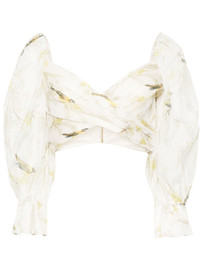 Acacia Birds-print cropped blouse Highlights - White/multicolour - Plisse effect - All-over acacia birds print - Wrap design - Sweetheart neck - Rear zip fastening - Long puff sleeves - Ruffle cuffs - Cropped length - Cotton lining Imported Composition Outer: Polyester 100% Lining: Cotton 100% SIZE & FIT Model measurements Height 5 ft 11 in(1.8 m) Bust/Chest 34.25 in(87 cm) Hips 35.82 in(91 cm) Waist 24.8 in(63 cm) FittingInformation Designed for a slim fit that sits just away from the body offering a close yet comfortable fit The elasticated shoulders offer movement and a comfortable fit Made from a lightweight non-stretch fabric This piece fits true to size – take your usual size Washing instructions Dry Clean Only