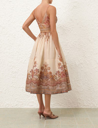 ITEM DETAILS The Illustration Draped Midi Dress in Cream Paisley from our Fall 2024 Collection, In Illustration. A silk linen midi dress featuring an overlap front with a draped bodice with a V-wire at the centre front and structured boning along the front, side, and back. - Silk linen midi dress - V-wire at centre front - Boning along front, side and back - Centre back invisible zip with hook and eye closure - Side pockets on skirt - Crinoline on hem skirt Style Code: 0571DF241 SIZE DETAILS 0P 0 1 2 3 4 Length 39.8 43.7 43.7 43.7 44.1 44.1 Bust 29.9 31.9 33.9 35.8 37.8 39.8 Waist 24.4 25.6 27.6 29.5 31.5 33.5 Fitted at the bust, relaxed through skirt This garment fits true to size Available in size 0P, suited to clients who are under 5'3"/ 160cm Model is 5'9.5"/178 cm, bust size 32C/10C and wears a size 0 Item measurements are in inches. CARE INSTRUCTIONS Main: 53% linen, 47% silk lining: 100% cotton Dry clean code f (hydrocarbon only) inside out in a protective bag Remove detachable trims and accessories prior to cleaning Cover to protect hardware Cool iron with protective cloth Do not spot clean Always check the garment care label for specific care instructions.