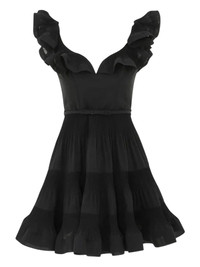 frill-pleated mini dress Highlights - Black - Frilled neckline - Pleated skirt - Belted waist - Sleeveless - Tiered skirt Imported Composition Lining: Cotton 100% Outer: Polyester 100%