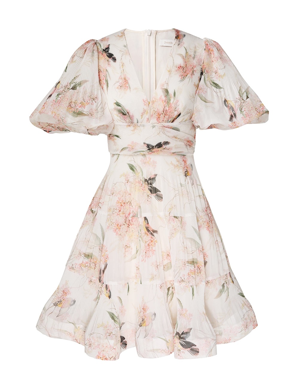 ITEM DETAILS The Pleated Mini Dress in Coral Birds from our Spring 2024 Collection, Natura. A mini dress that gathers at the under bust and falls to a crinoline inserted hem. - Pleated mini dress - Plunging V-neckline with optional closure - Crinoline inserted at hem - Invisible zip at centre back Style Code: 6891DRS24 SIZE DETAILS 0P 0 1 2 3 4 Bust 74 79 85 90 95 100 Waist 63 66 71 76 82 87 Sleeve 43 45 46 46 47 48 Fitted through bodice and shoulders This garment fits true to size Available in size 0P, suited to clients who are under 5'3"/ 160cm Model is 5'9.5"/178 cm, bust size 32C/10C and wears a size 0 Item measurements have been rounded to the nearest cm CARE INSTRUCTIONS Main: 100% polyester Lining: 100% cotton Exclusive of trims Dry clean only code f (hydrocarbon) with protective bag Do not iron Do not spot clean Turn garment inside out before dry cleaning Always check the garment care label for specific care instructions.