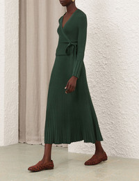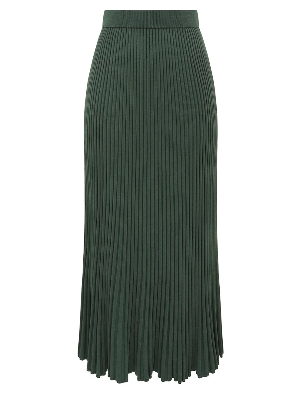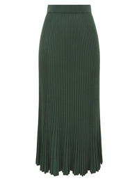 ITEM DETAILS The Pleated Rib Midi Skirt in Dark Green from our Fall 2025 Collection, Hypnotic. A knit midi length skirt featuring an elasticated waist and a soft A-line silhouette. - Elasticated waist midi skirt - Heavily pleated - Slip on style Style Code: 4879SF25R SIZE DETAILS 0P 0 1 2 3 4 Length 27.5 30.5 30.5 30.5 30.5 30.5 Waist 23 23.5 26 28.5 30 32.5 Hip 30.5 32.5 34.5 37 39.5 41 Designed with an elasticated waistband for a flexible fit This garment fits true to size Available in size 0P, suited to clients who are under 5'3"/ 160cm Model is 5'9.5"/178 cm, bust size 32C/10C and wears a size 0 Item measurements are in inches CARE INSTRUCTIONS 87% viscose 13% polyamide Dry clean only code f (hydrocarbon only); Remove any detachable trims prior to dry cleaning; Cover to protect trim; Cool iron with protective cloth; Do not spot clean; Store garment flat do not hang Always check the label or care card for specific care instructions.