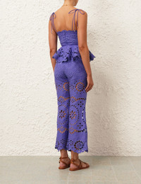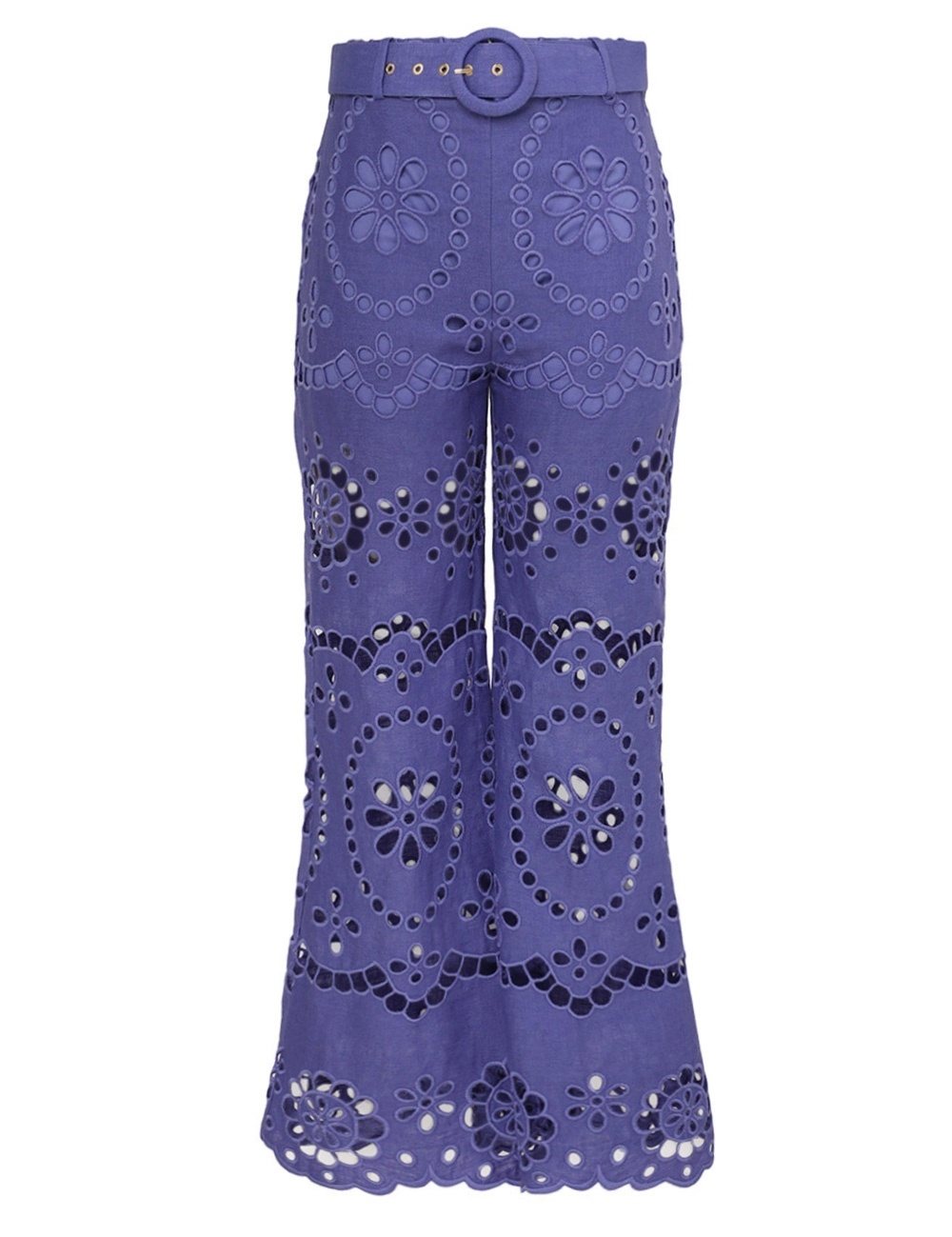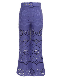 ITEM DETAILS The Pop Embroidered Crop Pant in Blue from our Summer Swim 2024 Collection. A linen pant featuring a cropped, flared silhouette, finished with embroidery throughout and a removable buckle belt. - Linen pant - Belt loops with removable self cover belt - Scallop hem - Invisible centre back zip Style Code: 1239PSS244 SIZE DETAILS 0P 0 1 2 3 4 Length 34.3 37.4 37.8 37.8 38.2 38.6 Waist 26.8 27.6 29.9 31.5 33.9 35.4 Hip 34.6 36.2 38.6 40.2 42.5 44.1 Inseam 24.8 27.2 27.2 27.2 27.2 27.2 Fixed high waist Relaxed through legs Mid-weight, non-stretchy fabric This garment fits true to size Available in size 0P, suited to clients who are under 5'3"/ 160cm Model is 5'9.5"/178 cm, bust size 32C/10C and wears a size 0 Item measurements are in inches. CARE INSTRUCTIONS Main: 100% linen Lining: 100% cotton Embroidery: 100% polyester Exclusive of trims Dry clean only code p Cool iron Do not spot clean Remove belt and turn garment inside out before laundering Always check the garment care label for specific care instructions.