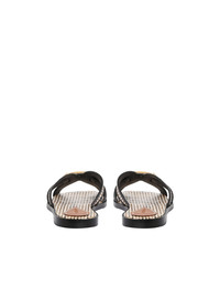 ITEM DETAILS The Prisma Slide in Onyx from our Resort 2024 Collection, Matchmaker. A leather slide sandal featuring contrast raffia throughout and ZIMMERMANN branded hardware. - Leather sandal - Soft square toe - Branded snaffle hardware - Made in Italy Style Code: 5100R24 SIZE DETAILS This shoe fits true to size. CARE INSTRUCTIONS Leather care This item was handcrafted using genuine leather. Leather can alter or stain if in contact with humidity or atmospheric agents. Marks or irregularities in natural hides can appear in even the most luxurious skins. These are naturally occurring features and should not be thought of as imperfections. On occasion leather can stain clothing or other objects it comes into contact with. To maintain in best condition, avoid direct exposure to light and heat, water, oils, perfume and cosmetics and store at room temperature. Always check the garment care label for specific care instructions.