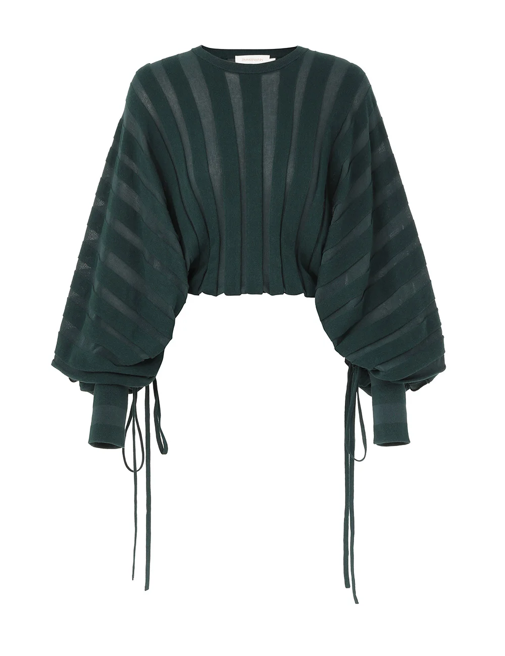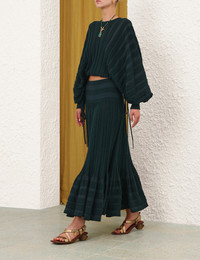 ITEM DETAILS The Rebellion Drawn Sweater in Teal from our Cruise 2026 Collection, Twisted Romance. A cotton blend sweater featuring a crew neckline, long billow sleeves with elongated fitted cuffs and a contrasting stripe design. - Cropped knit sweater - Voluminous sleeves - Ribbed cuffs with rouleau ties - Ribbed crew neckline Style Code: 7321TC261 SIZE DETAILS 0P 0 1 2 3 4 Length 17.5 19 19.5 19.5 19.5 19.5 Sleeve 19.5 20.5 20.5 20.5 20.5 20.5 Designed with an elasticated waist for a flexible fit This garment fits true to size Available in size 0P, suited to clients who are under 5'3"/ 160cm Model is 5'9.5"/178 cm, bust size 32C/10C and wears a size 0 Item measurements are in inches CARE INSTRUCTIONS 44% cotton 36% linen 20% recycled polyester Dry clean only code f (hydrocarbon only) Remove any detachable trims prior to dry cleaning Cover to protect trim Iron in low temperature with protective cloth Do not spot clean Store garment flat do not hang Always check the label or care card for specific care instructions.