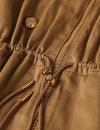 ITEM DETAILS The Rebellion Drawstring Trench in Khaki from our Cruise 2026 Collection, Twisted Romance. A cotton trench coat featuring a classic collar, zip closure at the centre front, drawstring waist cord and front flap pockets. - Cotton midi-length trench coat - Gold button detailing throughout - Metal zipper at centre front - Elasticated drawstring waist with eyelets - Front pockets with flaps - Folded cuffs with gold button detailing Style Code: 7210CC261 SIZE DETAILS 0P 0 1 2 3 4 Length 43 46.5 47 47 47 47.5 Bust 51 53.5 55 57.5 59 61.5 Waist 27 27.5 30 32.5 34 36 Sleeve 20.5 22 22 22 22 22 Drawstring waist for flexible fit This garment fits true to size Available in size 0P, suited to clients who are under 5'3"/ 160cm Model is 5'9.5"/178 cm, bust size 32C/10C and wears a size 0 Item measurements are in inches CARE INSTRUCTIONS Main: 100% cotton; lining: 75% viscose, 25% silk Dry clean only code f (hydrocarbon only); Remove any detachable trims prior to dry cleaning; Cover to protect trim; Iron in low temperature with protective cloth; Light steam only; Do not spot clean Always check the label or care card for specific care instructions.