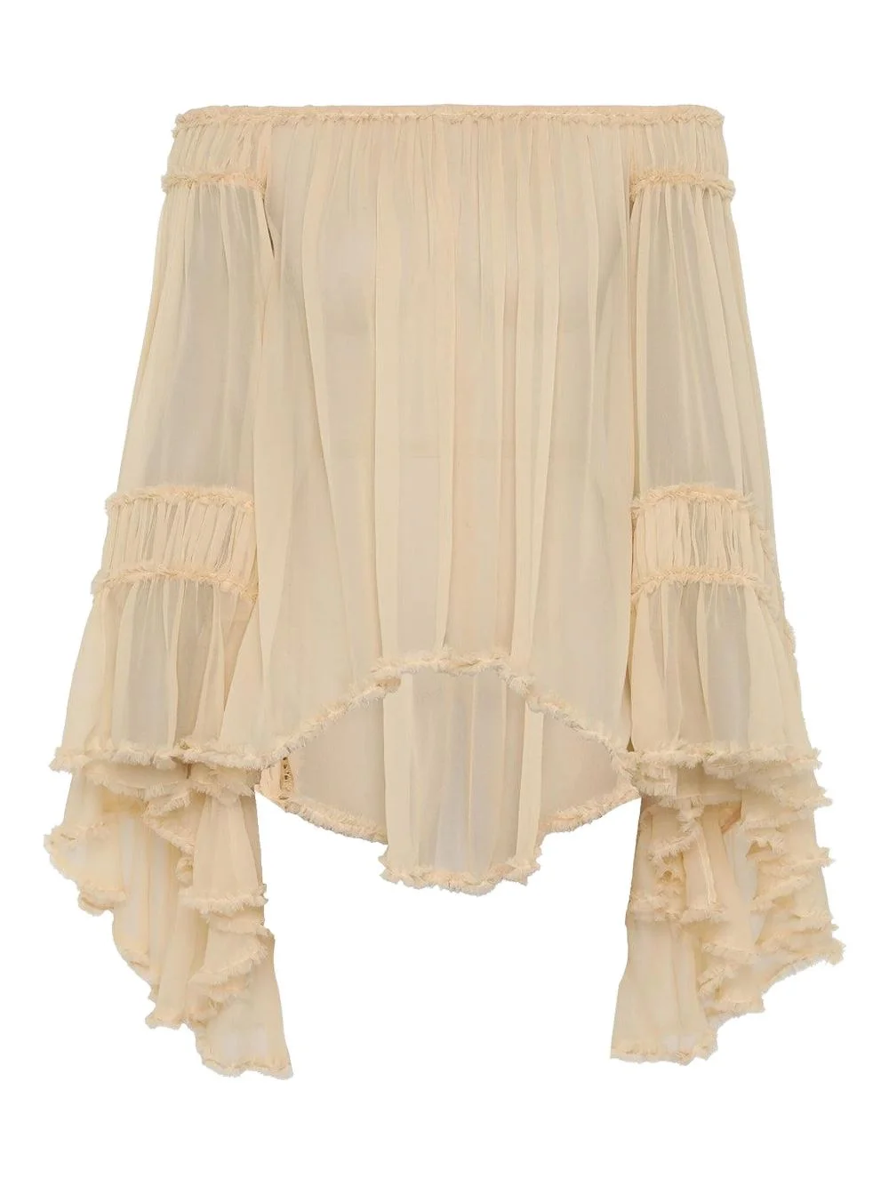 Rebellion Fray ruffled blouse Highlights - Cream - Off-shoulder design - Ruffled trims - Frayed edges - Long sleeves - Tiered ruffles Imported Composition Outer: Silk 100% Lining: Viscose 100% Washing instructions Dry Clean Only