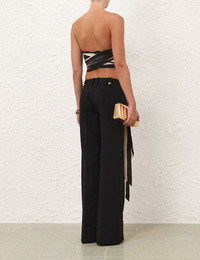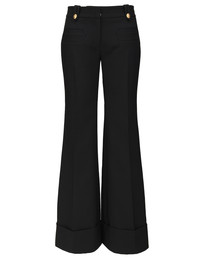 ITEM DETAILS The Rebellion Low-Rise Flare Pant in Black from our Cruise 2026 Collection, Twisted Romance. A low-rise pant featuring front welt pockets, pintuck detailing through the centre front and back, and a turned-up wide hem. - Low-rise waistband - Belt loops with button detailing - Hook-and-bar fastening at centre front - Front metal fly closure - Pintuck detailing through centre front and back - Turned-up wide hem Style Code: 6286PC261 SIZE DETAILS Fitted at the waist and hips, relaxed through the legs Low-rise waist with a full-length leg This garment fits true to size Available in size 0P, suited to clients who are under 5'3"/ 160cm Model is 5'9.5"/178 cm, bust size 32C/10C and wears a size 0 CARE INSTRUCTIONS Main: 100% recycled polyester; lining: 100% cotton Dry clean only code f (hydrocarbon only); Remove any detachable trims prior to dry cleaning; Cover to protect trim; Iron in low temperature with protective cloth; Light steam only; Do not spot clean Always check the label or care card for specific care instructions.