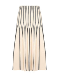 ITEM DETAILS The Rebellion Striped Midi Skirt in Cream Stripe from our Cruise 2026 Collection, Twisted Romance. A midi-length skirt featuring an elasticated waist and pleats throughout. - Mid-rise skirt - Gathered throughout - Slip on style Style Code: 6619SC261 SIZE DETAILS 0P 0 1 2 3 4 Length 28.5 31.5 31.5 31.5 31.5 31.5 Waist 23.5 25 27.5 29 31.5 33 Hip 31.5 33 36 38 40 41.5 Elastic waist for an easy fit This garment fits true to size Available in size 0P, suited to clients who are under 5'3"/ 160cm Model is 5'9.5"/178 cm, bust size 32C/10C and wears a size 0 Item measurements are in inches CARE INSTRUCTIONS 100% viscose Dry clean only code f (hydrocarbon only) Remove any detachable trims prior to dry cleaning Cover to protect trim Iron in low temperature with protective cloth Do not spot clean Store garment flat do not hang Always check the label or care card for specific care instructions.