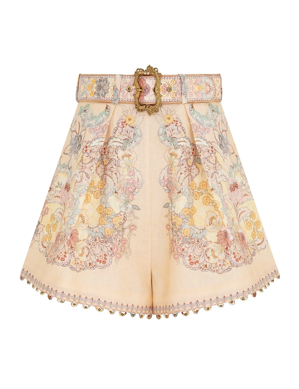 ITEM DETAILS The Rebellion Tuck Short in Lemon Floral from our Cruise 2026 Collection, Twisted Romance. A linen short featuring a fixed high waistband, removable belt and side seam pockets, finished with rouleau loop trim and gathering throughout. - Linen fabric - Removable waist belt with buckle hardware - Invisible zip closure at centre back - Rouleau loops at hem - Side seam pockets - Beaded trim - Fully lined Style Code: 6929AC261 SIZE DETAILS 0P 0 1 2 3 4 Length 11.5 12 12.5 13 13 13.5 Waist 25 26 28.5 30.5 32.5 34.5 Inseam 2.5 2.5 2.5 2.5 2.5 2.5 Fitted at the waist, relaxed through the hips and legs This garment fits true to size Available in size 0P, suited to clients who are under 5'3"/ 160cm Model is 5'9.5"/178 cm, bust size 32C/10C and wears a size 0 Item measurements are in inches CARE INSTRUCTIONS Main: 100% linen; lining: 100% cotton Dry clean only code f (hydrocarbon only); Remove any detachable trims prior to dry cleaning; Cover to protect trim; Iron in low temperature with protective cloth; Light steam only; Do not spot clean Always check the label or care card for specific care instructions.