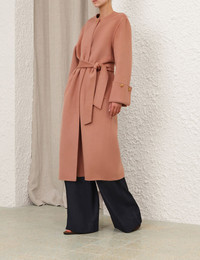 ITEM DETAILS The Rebellion Wrap Coat in Caramel from our Cruise 2026 Collection, Twisted Romance. A wool blend coat featuring a crew neckline, gold button detailing, front flap pockets and a self-tie waist belt. - Wool blend fabric - Midi-length coat - Gold button closure at neckline - Removable soft waist belt - Folded cuffs with gold button detailing - Front welt pockets - Unlined Style Code: 6852CC261 SIZE DETAILS 0P 0 1 2 3 4 Length 42.5 47.5 48 48.5 48.5 49 Bust 42.5 44 46.5 48 50.5 53 Hip 42.5 45 46.5 49 50.5 53 Sleeve 21.5 23 23 23 23.5 23.5 Designed for a relaxed fit This garment fits true to size Available in size 0P, suited to clients who are under 5'3"/ 160cm Model is 5'9.5"/178 cm, bust size 32C/10C and wears a size 0 Item measurements are in inches CARE INSTRUCTIONS Main: 58% wool, 16% polyamide, 14% viscose, 12% silk Dry clean only code f (hydrocarbon only); Remove any detachable trims prior to dry cleaning; Cover to protect trim; Iron in low temperature with protective cloth; Light steam only; Do not spot clean Always check the label or care card for specific care instructions.