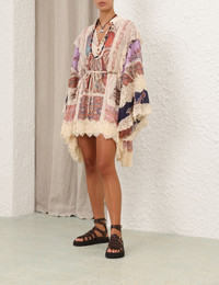 ITEM DETAILS The Rhiannon Billow Mini Dress in Spliced from our Summer Swim 2025 Collection. A cotton ruffled mini dress featuring long wide sleeves, a stand collar, a self tie belt with gemstone beads, finished with an asymmetric scalloped hem spliced with lace trim. - Frilled details along sleeves and hem - Removable waist tie belt - Rouleau loops with gemstone buttons down the front - Invisible zip closure at the top back - Comes with separate slip Campaign: This style was featured in the Summer Swim 2025 Campaign. Style Code: 3308DSS251 SIZE DETAILS 0P 0 1 2 3 Length 34 36 36.5 37 38 Sleeve 20 21.5 21.5 21.5 21.5 Designed for a slightly loose fit, with a closer fit at the bust This garment fits true to size Available in size 0P, suited to clients who are under 5'3"/ 160cm Model is 5'9.5"/178 cm, bust size 32C/10C and wears a size 0 Item measurements are in inches CARE INSTRUCTIONS Main: 100% cotton, lace: 100% cotton, lace: 100% polyamide, slip: 86% recycled polyester, 14% elastane Dry clean only code f (hydrocarbon only); Remove any detachable trims prior to dry cleaning; Cover to protect trim; Cool iron with protective cloth; Light steam only; Do not spot clean Gentle cold hand wash separately with mild detergent; Remove any detachable trims prior to cleaning; Cover to protect trim; Do not soak, rub or wring; Do not bleach; Dry in shade; Cool iron with protective cloth; Do not tumble dry; Do not spot clean; Dry cleanable code f (hydrocarbon only); Always check the label or care card for specific care instructions.