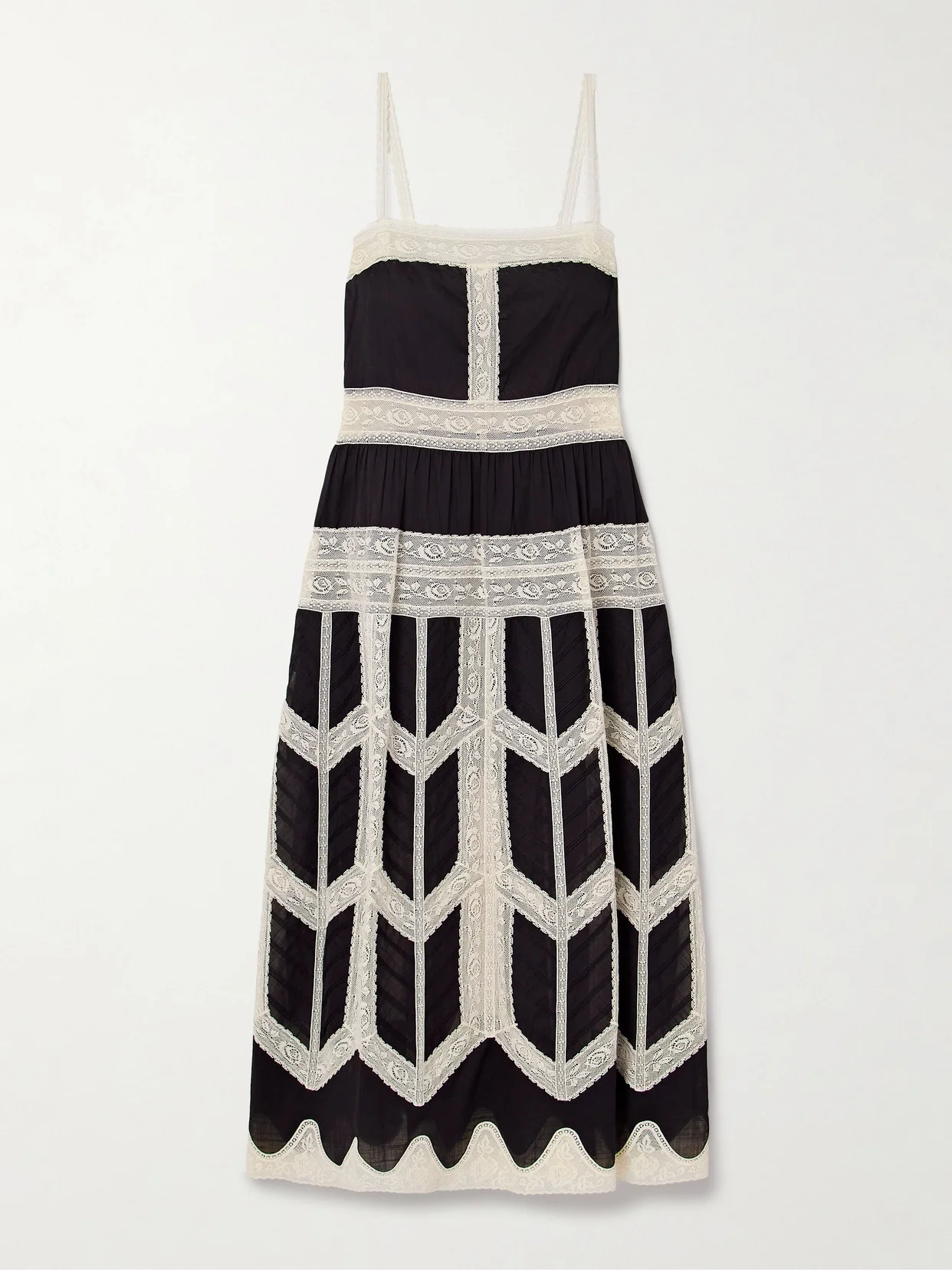 Zimmermann's dress is made from airy cotton-voile spliced with panels of dainty lace for contrast. It's cut in a floaty shape and traced with pretty scalloped edges. Wear yours with ballet flats or sandals on summery days.