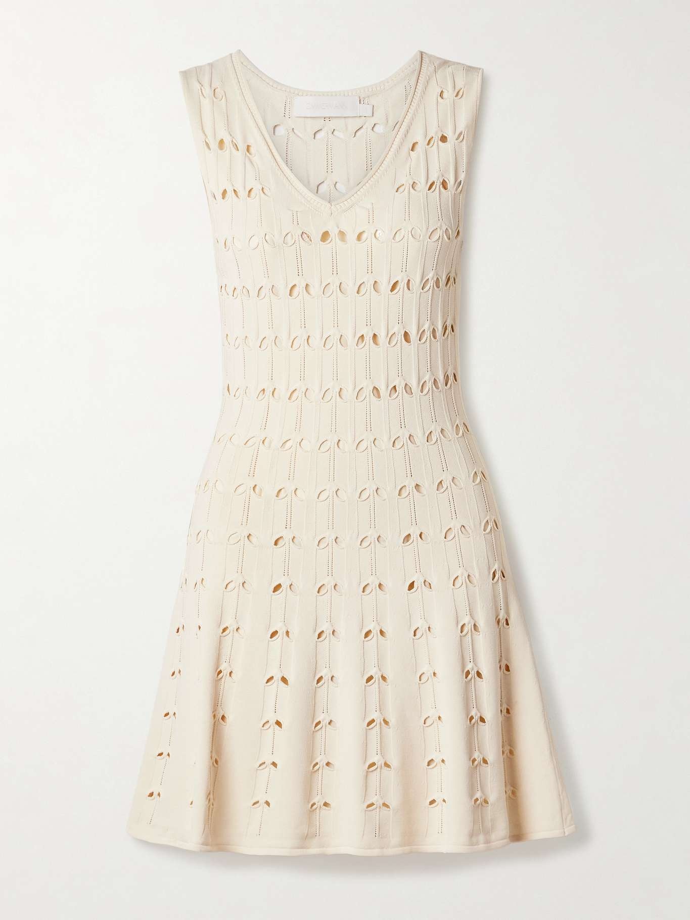 EDITORS'NOTES Part of Zimmermann's 'Rhiannon' collection, this dress is made from pointelle-knit cotton-blend with leaf-shaped cutouts throughout. It's designed to gently skim your figure before flaring out at the hem and comes with a detachable slip for coverage. SIZE & FIT - 00 = UK 6/ US 2/ FR 34 - 0 = UK 8/ US 4/ FR 36 - 1 = UK 10/ US 6/ FR 38 - 2 = UK 12/ US 8/ FR 40 - 3 = UK 14/ US 10/ FR 42 - 4 = UK 16/ US 12/ FR 44 - Fits true to size, take your normal size - Intended to be fitted at the bust and waist, slightly loose at the hip - Designed with a detachable, slim-fitting slip - Lightweight, open knit - Model is 180cm/ 5'11" and is wearing the designer's size 0 DETAILS & CARE - Cream cotton-blend - Slips on - 50% cotton, 41% viscose 9% polyester