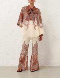 ITEM DETAILS The Rhiannon Flare Pant in Cream Paisley from our Summer Swim 2025 Collection. A linen flare pant featuring a center front zip closure and a bold placement print, finished with belt loops. - Linen fabric - Flare pant silhouette - Side seam pockets - Waistband closure with hook and bar - Lined up to knee length Style Code: 3235PSS251 SIZE DETAILS 0P 0 1 2 3 4 Length 36 39.5 40 40 40 40 Waist 27.5 29 30.5 33 34.5 37 Hip 36 38 40 41.5 44 45.5 Inseam 30 32.5 32.5 32.5 32.5 32.5 Designed to be slightly fitted at the waist and hips, relaxed through the legs Mid rise, full-length Available in size 0P, suited to clients who are under 5'3"/ 160cm Model is 5'9.5"/178 cm, bust size 32C/10C and wears a size 0 Item measurements are in inches CARE INSTRUCTIONS Main: 100% linen; lining: 100% cotton Dry clean only code f (hydrocarbon only); Remove any detachable trims prior to dry cleaning; Cover to protect trim; Cool iron with protective cloth; Light steam only; Do not spot clean Always check the label or care card for specific care instructions.