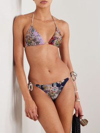 Zimmermann's bikini is printed with flowers on various colored backdrops. Cut from smooth stretch fabric, it's designed in a classic triangle silhouette and secures with ties tipped with gold-tone beads. Size & Fit - 0 = UK 8/ US 4/ FR 36 - 1 = UK 10/ US 6/ FR 38 - 2 = UK 12/ US 8/ FR 40 - 3 = UK 14/ US 10/ FR 42 - 4 = UK 16/ US 12/ FR 44 - Fits true to size, take your normal size - Low-rise with minimal brief coverage - Model is 177cm/ 5'10", bra size 32B and is wearing the designer's size 0 Details & Care - Multicolored stretch-polyamide - Ties at neck and back, briefs tie at sides - 80% polyamide, 20% elastane - Designer color: Spliced - Lotion, sunscreen, oil and chlorine can cause discoloration of this item; this is not a manufacturing defect. Please follow care instructions to keep your swimwear in the best condition