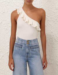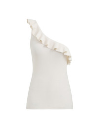 ITEM DETAILS The Rhiannon Frill Asymmetric Tank in Parchment from our Summer Swim 2025 Collection. A knit tank top featuring one shoulder with dramatic frill detailing. - Knit fabric - Asymmetric shoulder - Frill detailing across the neckline Style Code: 4397TSS251 SIZE DETAILS 0P 0 1 2 3 Length 20.5 21.5 22 22.5 22.5 Bust 18 19.5 22 24.5 26 Waist 15.5 17.5 19.5 22 23.5 Designed to fit close to the body This garment fits true to size Available in size 0P, suited to clients who are under 5'3"/ 160cm Model is 5'9.5"/178 cm, bust size 32C/10C and wears a size 0 Item measurements are in inches CARE INSTRUCTIONS 76% viscose 21% polyamide 3% elastane Gentle cold hand wash separately with mild detergent Remove any detachable trims prior to cleaning Cover to protect trim; Do not soak, rub or wring Do not bleach Do not tumble dry Dry flat in shade Cool iron with protective cloth Do not spot clean; Store garment flat do not hang Dry cleanable code f (hydrocarbon only) Always check the label or care card for specific care instructions.