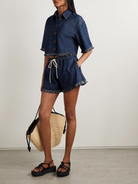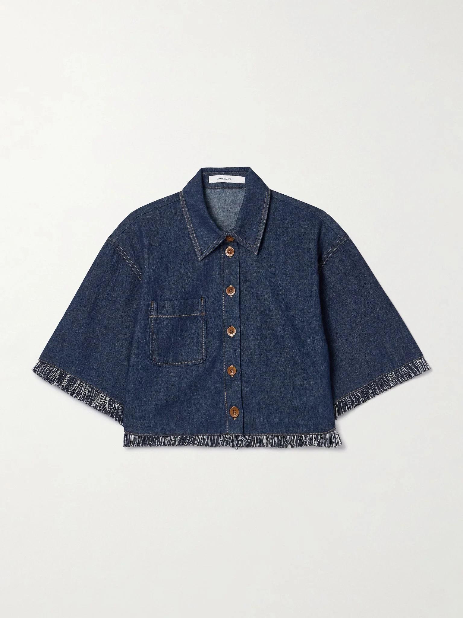 Zimmermann's cropped 'Rhiannon' shirt has a cool, vintage-inspired design with frayed edges. It's made from denim in a classic blue contrasted by gold stitching along the patch pocket and smart collar. Size & Fit - 00 = UK 6/ US 2/ FR 34 - 0 = UK 8/ US 4/ FR 36 - 1 = UK 10/ US 6/ FR 38 - 2 = UK 12/ US 8/ FR 40 - 3 = UK 14/ US 10/ FR 42 - 4 = UK 16/ US 12/ FR 44 - Fits true to size, take your normal size - Designed for a slightly loose fit - Lightweight, non-stretchy fabric - Model is 177cm/ 5'10" and is wearing the designer's size 0 Details & Care - Dark-blue denim - Button fastenings through front - 100% cotton - Machine wash