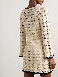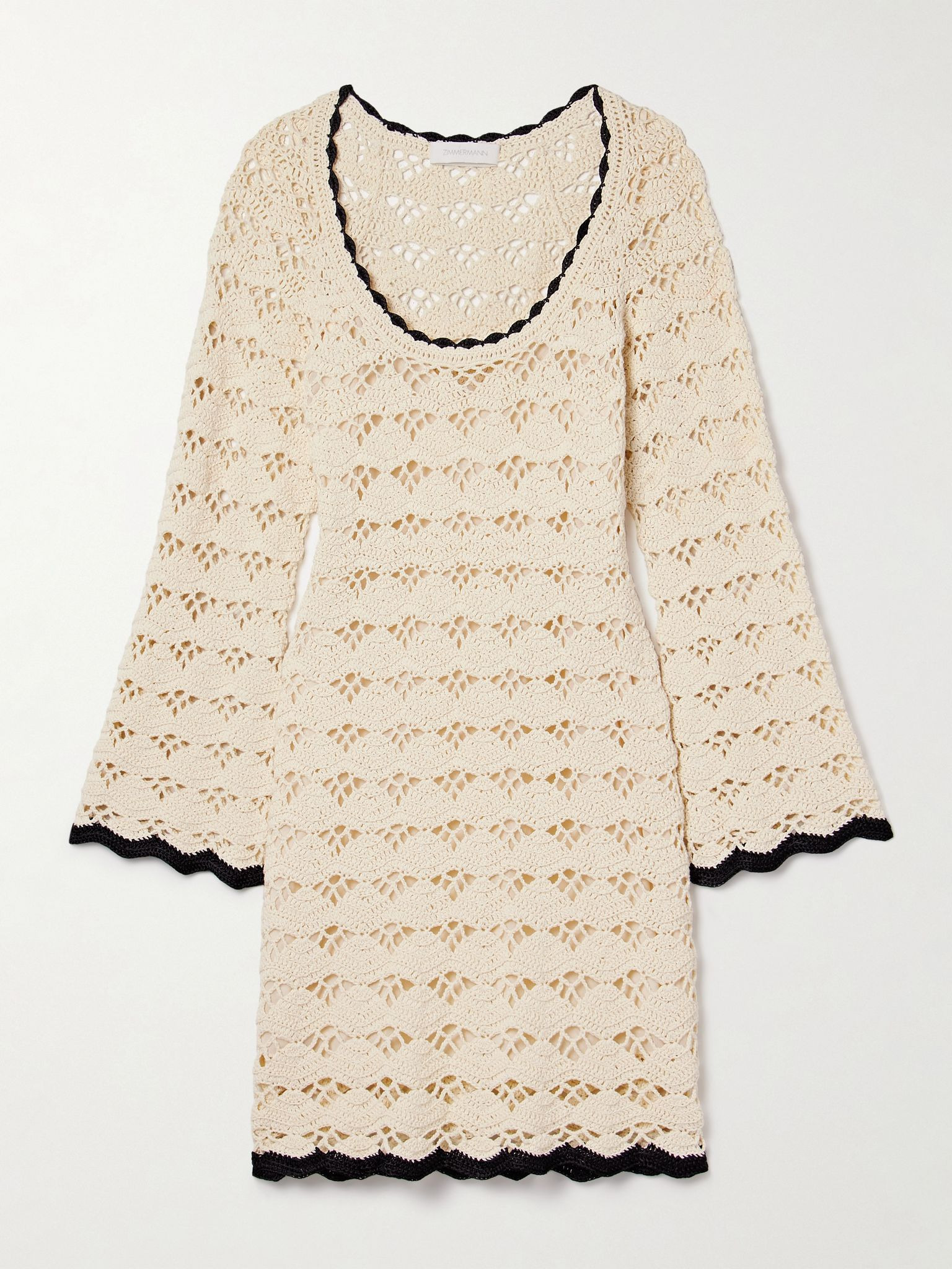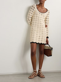 Zimmermann's dress can just as easily be styled for al fresco lunches as it could as a coverup over your bikini - just remove or add the voile lining depending on your preferred coverage. It's meticulously crocheted from cotton for a slightly loose fit and has contrasting scalloped edges. Size & Fit - 00 (petite) = UK 6/ US 2/ FR 34 (under 5’3”/ 160cm) - 0 = UK 8/ US 4/ FR 36 - 1 = UK 10/ US 6/ FR 38 - 2 = UK 12/ US 8/ FR 40 - 3 = UK 14/ US 10/ FR 42 - 4 = UK 16/ US 12/ FR 44 - Fits true to size, take your normal size - Intended for a slightly loose fit - Designed with a detachable, slim-fitting slip - Mid-weight, open knit - Model is 175cm/ 5'9" and is wearing the designer's size 1 Model measurements: - Bust: 75cm/ 29.5" - Waist: 60cm/ 23.5" - Hip: 93cm/ 36.5" Details & Care - Cream and black cotton - Slips on - 100% cotton