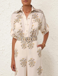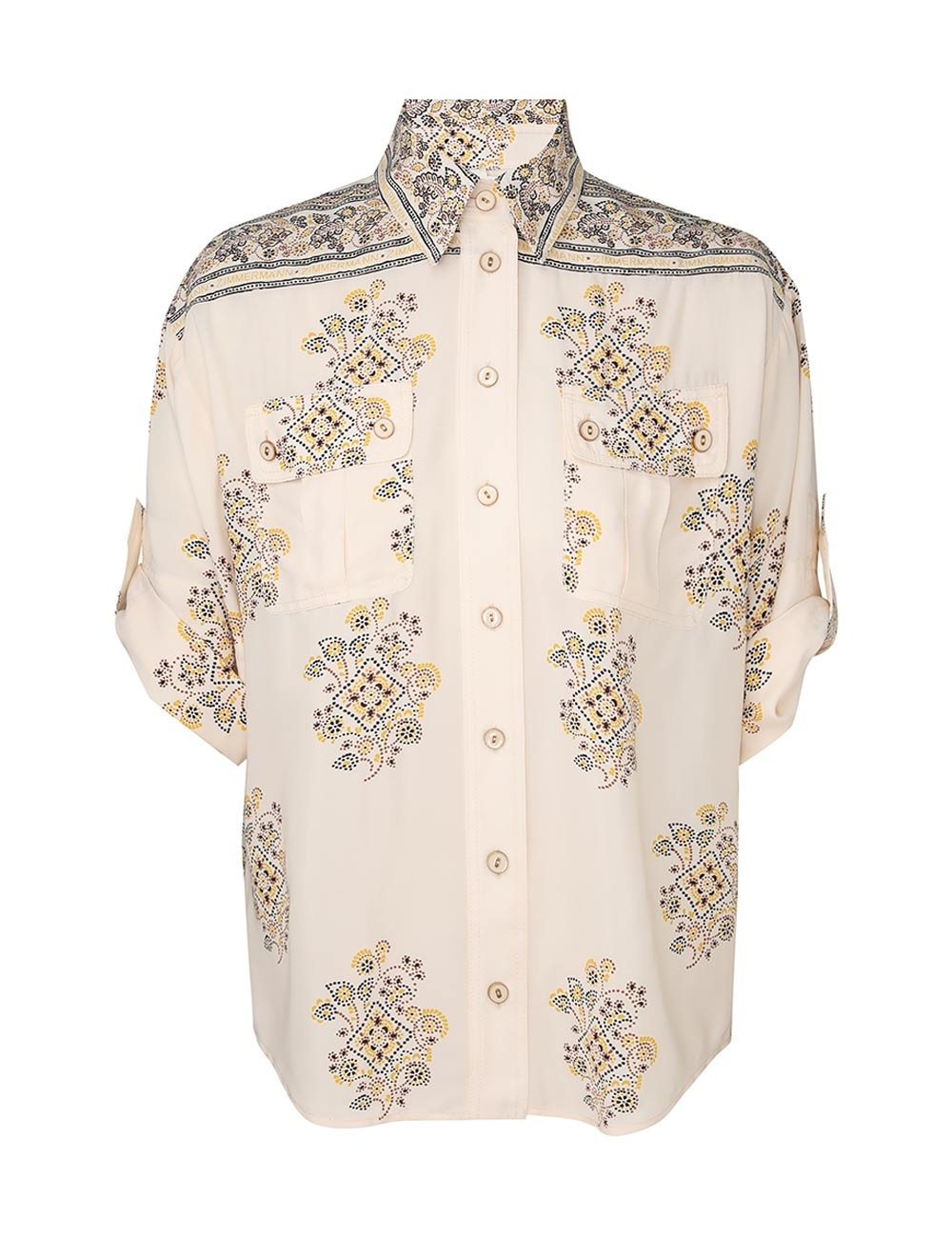 ITEM DETAILS The Safari Shirt in Utility Dot Lemon from our Spring 2024 Collection, Natura. A relaxed fit shirt featuring front pockets and buttons down the centre front. - Short sleeve shirt - Topstitching throughout - Double turn hem - Classic collar Style Code: 7644TRS24 SIZE DETAILS 0P 0 1 2 3 4 Length 63 66 67 68 68 69 Bust 115 120 125 130 135 141 Sleeve 34 36 36 36 37 37 Relaxed fit This garment fits true to size Available in size 0P, suited to clients who are under 5'3"/ 160cm Model is 5'9.5"/178 cm, bust size 32C/10C and wears a size 0 Item measurements have been rounded to the nearest cm CARE INSTRUCTIONS 100% silk Dry clean only code p with protective bag Cover and protect hardware Cool iron Do not spot clean Always check the care label for specific care instructions.