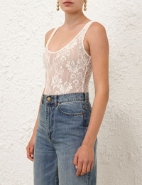 ITEM DETAILS The Lace Scoop Bodysuit in Cream from our Fall 2024 Collection, In Illustration. A lace bodysuit featuring a scoop neck and back. - Stretch lace - Slip on style - Mesh lining Style Code: 1190TF24R SIZE DETAILS 0 1 2 3 4 Length 73 74 76 77 79 Bust 73 78 84 88 94 Waist 59 64 70 74 80 Hip 75 80 86 91 96 Stretch lace for a flexible fit This garment fits true to size Available in size 0P, suited to clients who are under 5'3"/ 160cm Model is 5'9.5"/178 cm, bust size 32C/10C and wears a size 0 Item measurements have been rounded to the nearest cm. CARE INSTRUCTIONS Main: 90% polyamide, 10% elastane lining: 85% polyester, 15% spandex Gentle cold hand wash separately with mild detergent Do not soak, spin or wring Dry without delay away from direct sunlight or heat Do not tumble dry Do not iron Do not spot clean Dry cleanable f (hydrocarbon only) Always check the garment care label for specific care instructions.