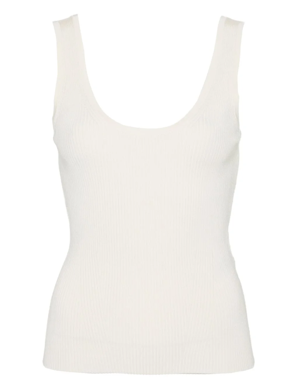 scoop-neck ribbed tank top Highlights - Off-white - Ribbed knit - Sleeveless - Scoop neck Imported Composition Viscose 77%, Polyamide 20%, Elastane 3% SIZE & FIT Model measurements Height 5 ft 10 in(1.78 m) Bust/Chest 33.46 in(85 cm) Hips 36.22 in(92 cm) Waist 23.22 in(59 cm) Washing instructions Dry Clean Only
