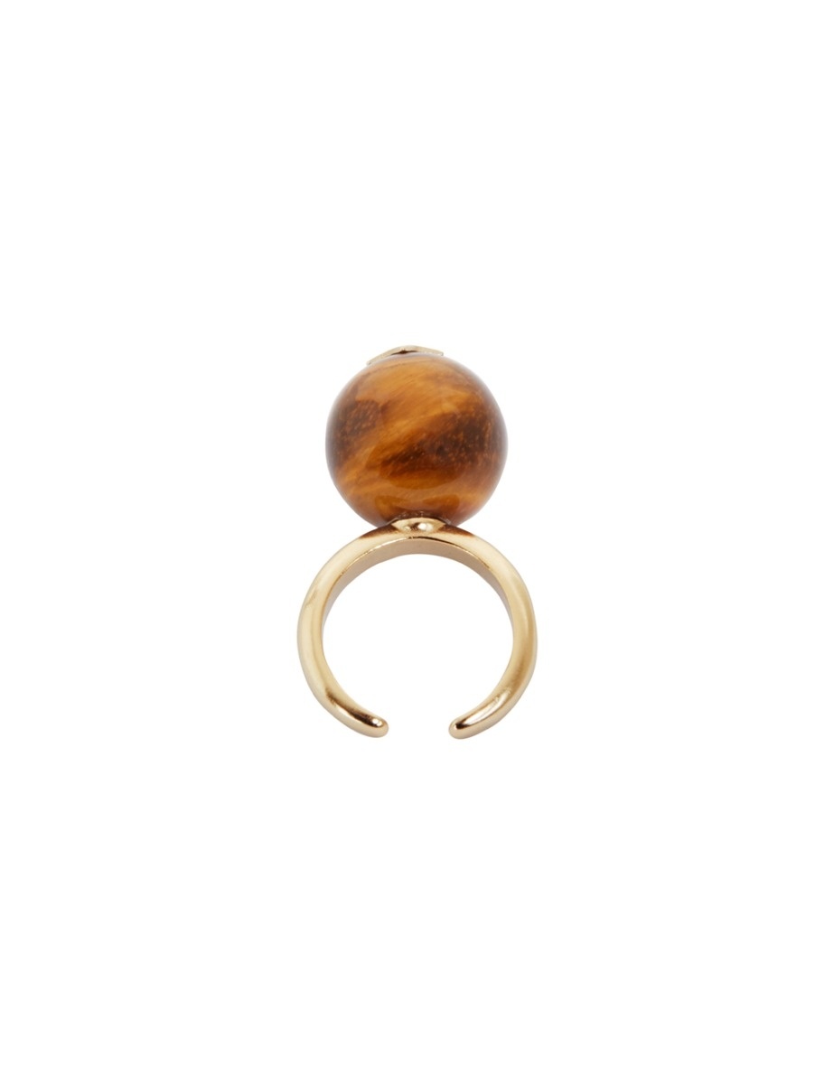 ITEM DETAILS The Semi Precious Orb Ring in Golden Brown Quartz from our Fall 2022 Collection, Stargazer. A large, zodiac inspired mini semi-precious orb ring featuring star motif hardware and custom plating with an adjustable back. - Gold plated - Semi-precious orb ring - Adjustable back - Customised plating Style Code: 4365F22 STYLING Style the Semi Precious Orb Ring with high waisted jeans, ankle boots and a chunky sweater to elevate your winter weekend look. SIZE DETAILS One size. CARE INSTRUCTIONS 100% brass Avoid contact with perfumes, acetones, hand/body creams and water as this may cause damage or discolouring. Please remove when exercising, swimming or showering. Do not use cleaning products. Clean with a soft cloth to remove dirt and dust. Store in a cool, dry place. Keep away from direct sunlight and heat. Always check the garment care label for specific care instructions