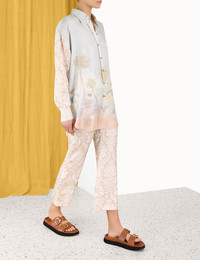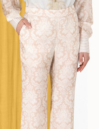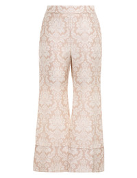 ITEM DETAILS The Sensory Kick Flare in Beige Damask from our Fall 2023 Collection, Luminosity. A silk twill pant featuring a damask print and an elasticated back waist. - Silk twill - Pyjama style, flare pant - Cropped length - Fixed front waist, elasticated back waist - Front slant pockets Style Code: 2136PF233 SIZE DETAILS 0P 0 1 2 3 Waist 70 74 78 84 90 Hip 96 100 106 110 116 Length 81 89 90 90 91 Elastic waist for a flexible fit Flared through leg This garment fits true to size Available in size 0P, suited to clients who are under 5'3"/ 160cm Model is 5'9.5"/178 cm, bust size 32C/10C and wears a size 0 Item measurements have been rounded to the nearest cm. CARE INSTRUCTIONS 100% silk Exclusive of trims Dry clean only code f with protective bag Cool iron with protective cloth Light steam only Do not spot clean Cover and protect hardware Turn garment inside out before dry cleaning Always check the garment care label for specific care instructions.