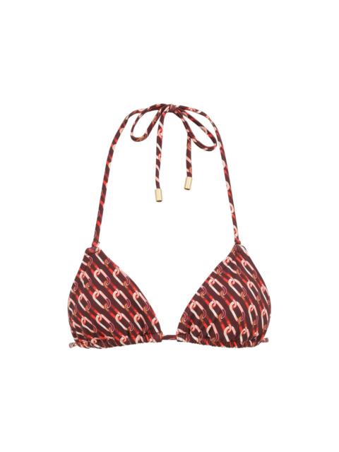 ITEM DETAILS The Separates Mini Tri in Mango from our Summer Swim 2025 Collection. A triangle bikini top constructed from form-fitting Italian lycra featuring fully adjustable neck and under bust ties finished with toggle ends. - Italian lycra - Mini triangle bikini top - Self tie straps with toggle ends - Adjustable cup placement - Removable soft cups - Top only, pant sold separately Style Code: 1369WSS25 SIZE DETAILS This garment fits true to size Model is 5'10.5"/179 cm, bust size 34C/12C and wears a size 0 CARE INSTRUCTIONS Main: 62% polyamide, 38% elastane; lining: 92% polyamide, 8% elastane Do not roll up when wet; Rinse thoroughly after use; Remove any detachable trims prior to washing; Cold hand wash separately with mild detergent, avoid fabric softener; Dry in shade; Do not bleach or iron; Do not tumble dry; Do not dry clean; Light colours may be transparent when wet; Avoid contact with sunscreens, oils and rough surfaces; Avoid high temperature pools and spas treated with harsh chemicals Always check the label or care card for specific care instructions.