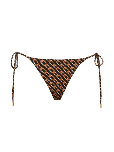ITEM DETAILS The Separates Mini Tri Pant in Burgundy Multi from our Summer Swim 2025 Collection. A skinny low rise bikini pant constructed from Italian lycra featuring self tie side straps. - Italian lycra - Low rise, skinny bikini pant - Adjustable self tie straps at both sides - Matching toggle ends on straps - Brief bottom coverage - Pant only, bra sold separately Style Code: 1374WSS25 SIZE DETAILS This garment fits true to size Model is 5'10.5"/179 cm, bust size 34C/12C and wears a size 0 CARE INSTRUCTIONS Main: 62% polyamide, 38% elastane; lining: 92% recycled nylon, 8% spandex Do not roll up when wet; Rinse thoroughly after use; Remove any detachable trims prior to washing; Cold hand wash separately with mild detergent, avoid fabric softener; Dry in shade; Do not bleach or iron; Do not tumble dry; Do not dry clean; Light colours may be transparent when wet; Avoid contact with sunscreens, oils and rough surfaces; Avoid high temperature pools and spas treated with harsh chemicals Always check the label or care card for specific care instructions.