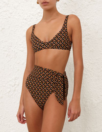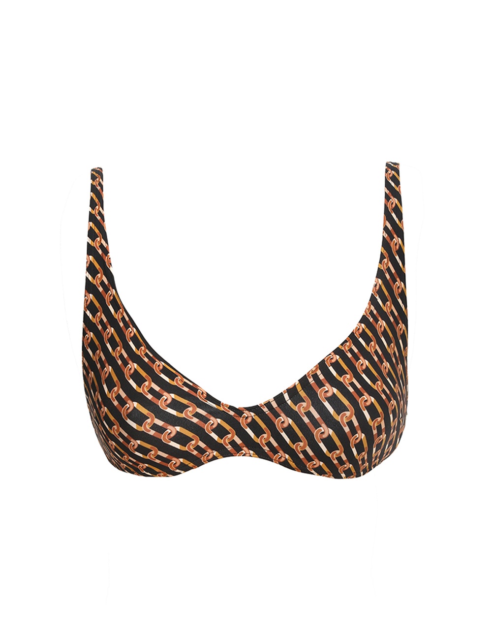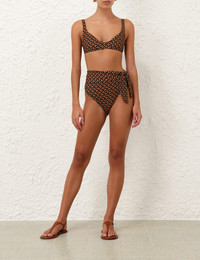 ITEM DETAILS The Separates Scoop Bikini Top in Chocolate Multi from our Summer Swim 2025 Collection. A bikini top constructed from form-fitting Italian lycra featuring a scoop neckline and fixed straps. - Italian lycra - Scoop neck bikini top - Fixed straps - Branded back clasp closure - Supportive bra, fits A-C/D cup - Top only, pant sold separately Style Code: 1371WSS25 SIZE DETAILS This garment fits true to size Model is 5'10.5"/179 cm, bust size 34C/12C and wears a size 0 CARE INSTRUCTIONS Main: 62% polyamide, 38% elastane; lining: 92% recycled nylon, 8% spandex Do not roll up when wet; Rinse thoroughly after use; Remove any detachable trims prior to washing; Cold hand wash separately with mild detergent, avoid fabric softener; Dry in shade; Do not bleach or iron; Do not tumble dry; Do not dry clean; Light colours may be transparent when wet; Avoid contact with sunscreens, oils and rough surfaces; Avoid high temperature pools and spas treated with harsh chemicals Always check the label or care card for specific care instructions.