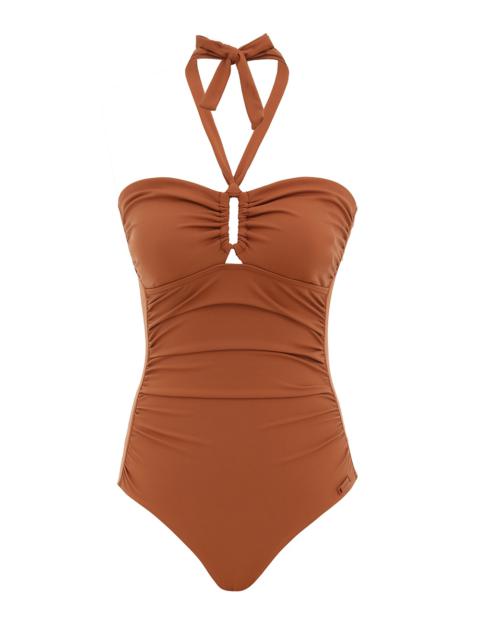 ITEM DETAILS The Separates Wide Link 1PC in Tan from our Summer Swim 2025 Collection. A halter neck one piece with ruching throughout the body and wide link detail at centre bust. - Italian lycra - Bandeau, halter one piece - Full coverage bottoms - Wide link detail at centre bust - Removable cups - Gripper elastic and boning for hold and bust support Style Code: 1377WSS25 SIZE DETAILS This garment fits true to size Model is 5'10.5"/179 cm, bust size 34C/12C and wears a size 0 CARE INSTRUCTIONS Main: 62% polyamide, 38% elastane, lining: 92% recycled nylon, 8% spandex Do not roll up when wet; Rinse thoroughly after use; Remove any detachable trims prior to washing; Cold hand wash separately with mild detergent, avoid fabric softener; Dry in shade; Do not bleach or iron; Do not tumble dry; Do not dry clean; Light colours may be transparent when wet; Avoid contact with sunscreens, oils and rough surfaces; Avoid high temperature pools and spas treated with harsh chemicals Always check the label or care card for specific care instructions.