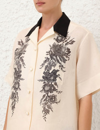 ITEM DETAILS The Short Sleeve Shirt in Cream Floral from our Resort 2025 Collection, Crush. A linen shirt featuring classic fold back collar with raffia buttons down centre front. - Linen shirt - Fold back collar - Raffia buttons down centre front - Short sleeves - Box pleat at centre back - Patch pocket Style Code: 2594TR25R SIZE DETAILS 0P 0 1 2 3 4 Length 63 68 69 69 70 71 Bust 120 124 130 134 140 144 Sleeve 24 26 27 27 28 29 Relaxed fit This garment fits true to size Available in size 0P, suited to clients who are under 5'3"/ 160cm Model is 5'9.5"/178 cm, bust size 32C/10C and wears a size 0 Item measurements have been rounded to the nearest cm CARE INSTRUCTIONS Main: 100% linen Dry clean code f (hydrocarbon only), inside out in a protective bag; Remove detachable trims and accessories prior to cleaning; Cover to protect hardware; Cool iron with protective cloth; Do not spot clean; Always check the label or care card for specific care instructions.