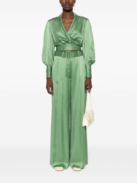 silk cropped wrap top ZIMMERMANN’s blouse is cut from lustrous green silk to a wrap silhouette that ties at the sides. The cropped silhouette is balanced with voluminous bishop sleeves. Highlights - Sea green - Silk - Satin weave - Shawl collar - Plunging v-neck - Long puff sleeves with zipped cuffs - Pleat detailing - Internal logo tag - Cropped - Straight hem - Self-tie fastening Imported Composition Silk 100% SIZE & FIT Model measurements Height 5 ft 11 in(1.8 m) Bust/Chest 32.67 in(83 cm) Hips 36.22 in(92 cm) Waist 24.4 in(62 cm) FittingInformation Designed for a wraparound style that can be adjusted to your preference Made from a lightweight non-stretch fabric This piece fits true to size – take your usual size Washing instructions Dry Clean Only