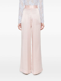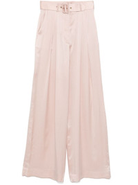 pink silk satin weave palazzo design concealed front button, hook and zip fastening high waist belt loops detachable waist belt pleat detailing two side slash pockets dart detailing to the rear flared hem Size & Fit Model Measurements: Height: 1.75 m Bust/Chest: 78.0 cm Hips: 88.0 cm Waist: 59.0 cm Model wears size 1 Fabric and Care Designer Style ID: 2151PR25R Designer Colour: PETAL Composition: Silk 100% Washing instructions: Dry Clean Only