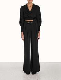 ITEM DETAILS The Silk Tuck Pant in Black from our Fall 2023 Collection, Luminosity. A high waisted, wide leg pant featuring side angle pocket and front fly closure. - High waisted, wide leg pant - Side angle pockets - Front fly closure - Removable self cover buckle and eyelet belt Style Code: 2151PRF23 SIZE DETAILS 0P 0 1 2 3 Length 104 113 114 114 115 Waist 66 68 74 80 84 Hip 108 114 118 124 128 Inseam 79 85 85 85 85 Fitted high waist Relaxed fit through hips and legs This garment fits true to size Available in size 0P, suited to clients who are under 5'3"/ 160cm Model is 5'9.5"/178 cm, bust size 32C/10C and wears a size 0 Item measurements have been rounded to the nearest cm. CARE INSTRUCTIONS 100% silk Exclusive of trims Remove belt before laundering Dry clean only code p with protective bag Cool iron on reverse Do not steam Do not spot clean Always check the garment care label for specific care instructions.