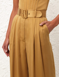ITEM DETAILS The Silk Tuck Pant in Honey from our Spring 2024 Collection, Natura. A sueded silk wide leg pant featuring belt loops and a removable self covered belt. - Sueded silk pant - Centre front zip with hook and eye - Side pockets - Fold up wide hem - Removable belt Style Code: 2151PRS24 SIZE DETAILS 0P 0 1 2 3 Length 105 113 113 114 115 Waist 66 68 74 78 84 Hip 108 112 118 122 128 Inseam 79 85 85 85 85 Fitted at the waist This garment fits true to size Available in size 0P, suited to clients who are under 5'3"/ 160cm Model is 5'9.5"/178 cm, bust size 32C/10C and wears a size 0 Item measurements have been rounded to the nearest cm. CARE INSTRUCTIONS 100% silk Exclusive of trims Dry clean only code f with protective bag Cool iron with protective cloth Light steam only Do not spot clean Turn garment inside out before dry cleaning Always check the garment care label for specific care instructions.