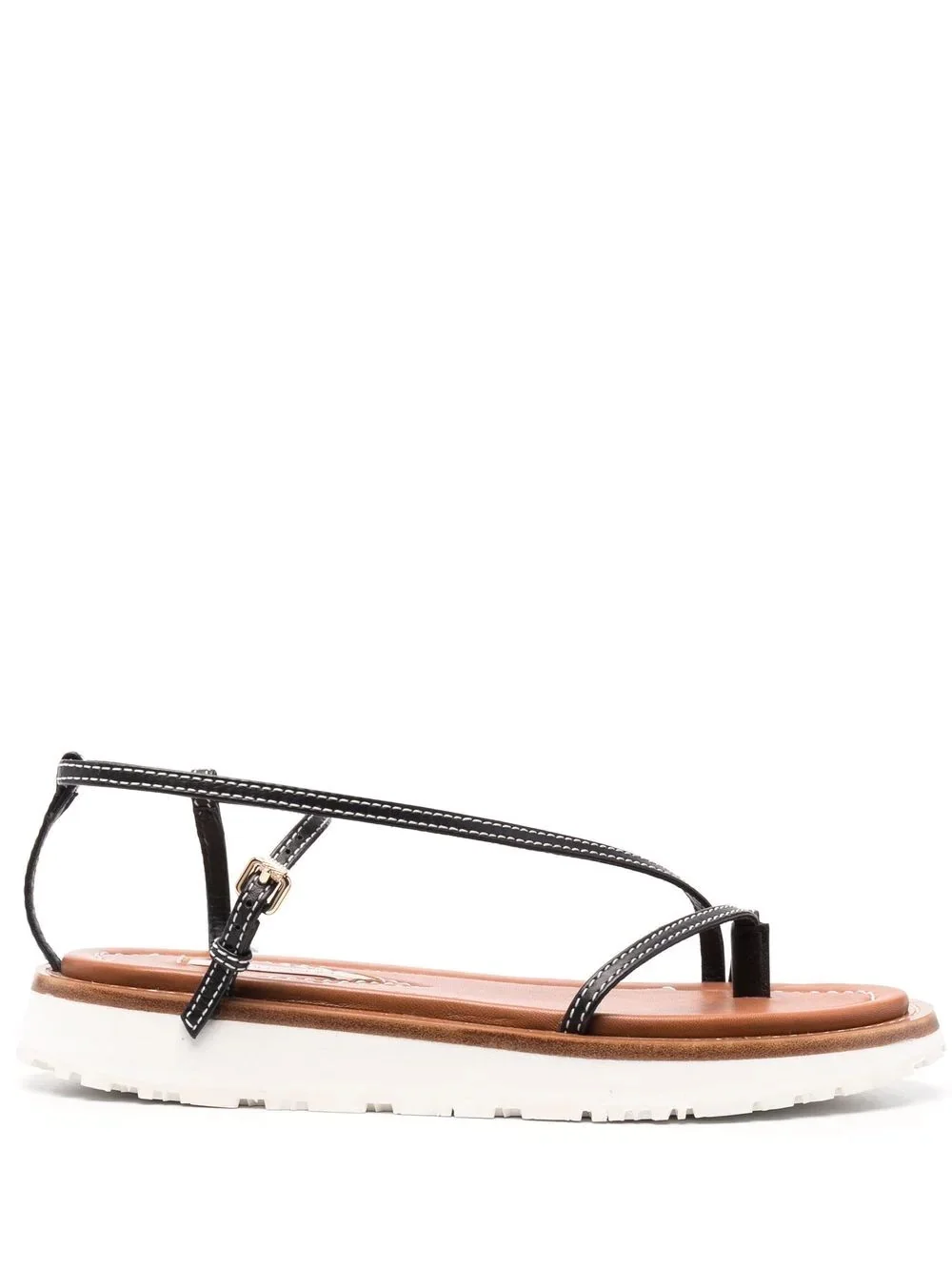 skinny strap flat sandals ZIMMERMANN's black sandals are crafted from supple calf leather. They feature a cushioned footbed, slender buckled straps and a chunky rubber sole. Imported Composition Leather 100% SIZE & FIT Measurement HEEL 1.37 in(3.5 cm) Sole height 1.18 in(3 cm)