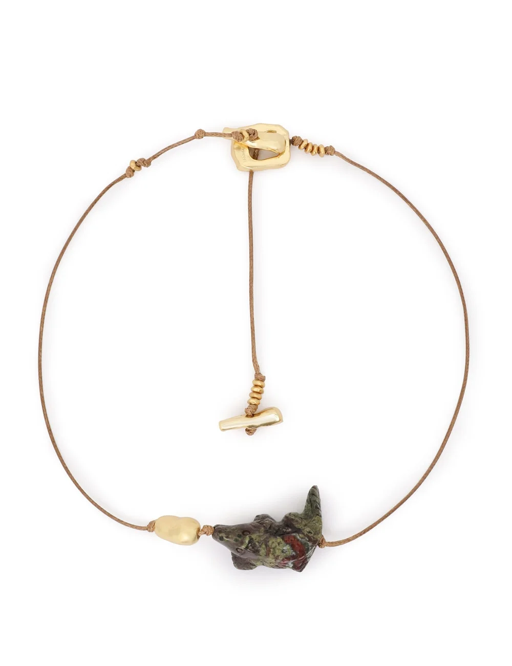 ITEM DETAILS The Solara Crocodile Necklace in Antique Gold/Multi from our Cruise 2026 Collection, Twisted Romance. A macrame necklace featuring a stone crocodile pendant at the centre front, finished with beads and stones throughout. - 16KT gold plated necklace - Custom cut crocodile pendant - Custom plating used for antique finish - Self tie cord closure with beaded ends - Designed for layering Style Code: 7060XC26A1 SIZE DETAILS One size. CARE INSTRUCTIONS Stone: quartzite; cord: polyester; hardware:16 karat gold plated brass Our semi-precious stones are hand-cut to enhance their natural beauty, with unique variations in each piece Zimmermann jewellery is made from 16kt gold-plated brass Please remove during exercise, showering, or swimming Keep away from perfumes, acetones, creams, and water to prevent damage or discoloration Clean gently with a soft, lint-free clothavoid cleaning products Store in a cool, dry place, away from direct sunlight and heat Always check the label or care card for specific care instructions.