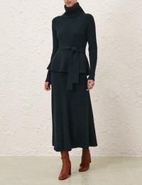 ITEM DETAILS The Illustration Panelled Rib Skirt in Forest from our Fall 2024 Collection, In Illustration. A high waisted knit skirt featuring an elasticated waistband and a soft A-line silhouette. - Wool skirt - Midi length - Soft A-line silhouette - Elasticated waistband - Ribbed throughout - Slip on style Exclusive: This style featured on Fall 2024 and only available at ZIMMERMANN stores and online. Style Code: 0344SF241 SIZE DETAILS 0P 0 1 2 3 Length 30.3 33.1 33.1 33.1 33.1 Waist 23.6 24.8 26.8 28.7 30.7 Hip 29.1 31.1 33.1 35 37 Elastic waist for an easy fit High waisted This garment fits true to size Available in size 0P, suited to clients who are under 5'3"/ 160cm Model is 5'9.5"/178 cm, bust size 32C/10C and wears a size 0 Item measurements are in inches. CARE INSTRUCTIONS 100% wool Dry cleanable code f (hydrocarbon only) inside out with protective bag Remove detachable trims and accessories prior to dry cleaning Cool iron on reverse with protective cloth Do not spot clean Store garment flat do not hang Always check the garment care label for specific care instructions.