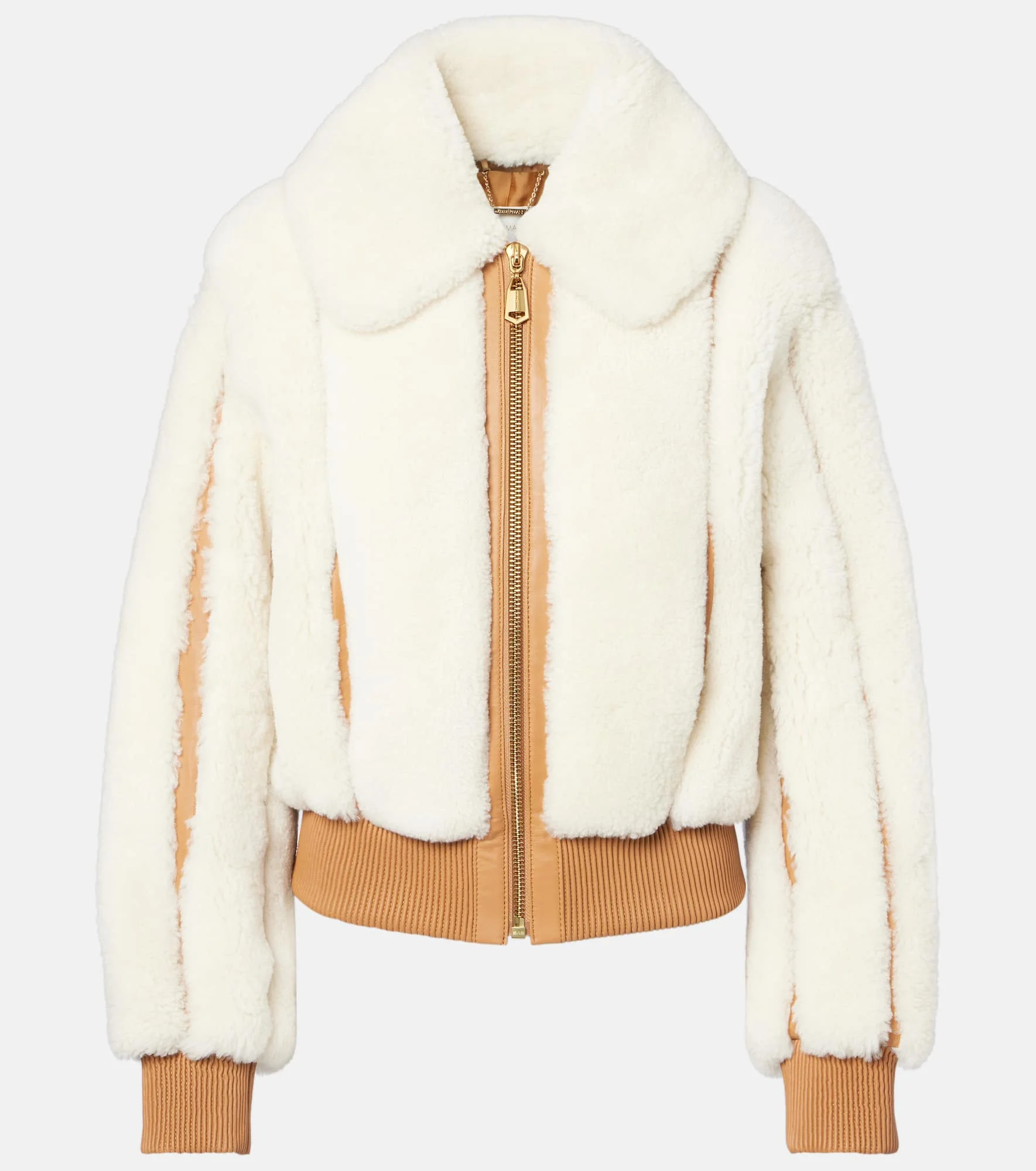 Ethereal and romantic barely scratch the surface when describing a Zimmermann piece. Made from plush shearling with leather and ribbed-knit trims, the Story bomber jacket features an oversized collar and gold-toned zipper fastening. Product Details - Material: 100% shearling - Care instructions: specialist clean - Made in Turkey - Designer color name: Cream - Item color: white, brown - Trim: 100% lamb leather - Lining: 75% viscose, 25% silk - Contains non-textile parts of animal origin - Hardware color: gold - Collar: classic (Straight point) - Closure: zipped front - Pockets: side slit pockets - Cuff: ribbed, elasticated - Hem: ribbed, elasticated - Fully lined - Item number: P01101098 Size & Fit - True to size - Designed for a loose fit - Elasticated hem - Non-stretchy fabric - Slightly cropped - The model seen in the picture is 178cm-5'10" and wearing a size 1