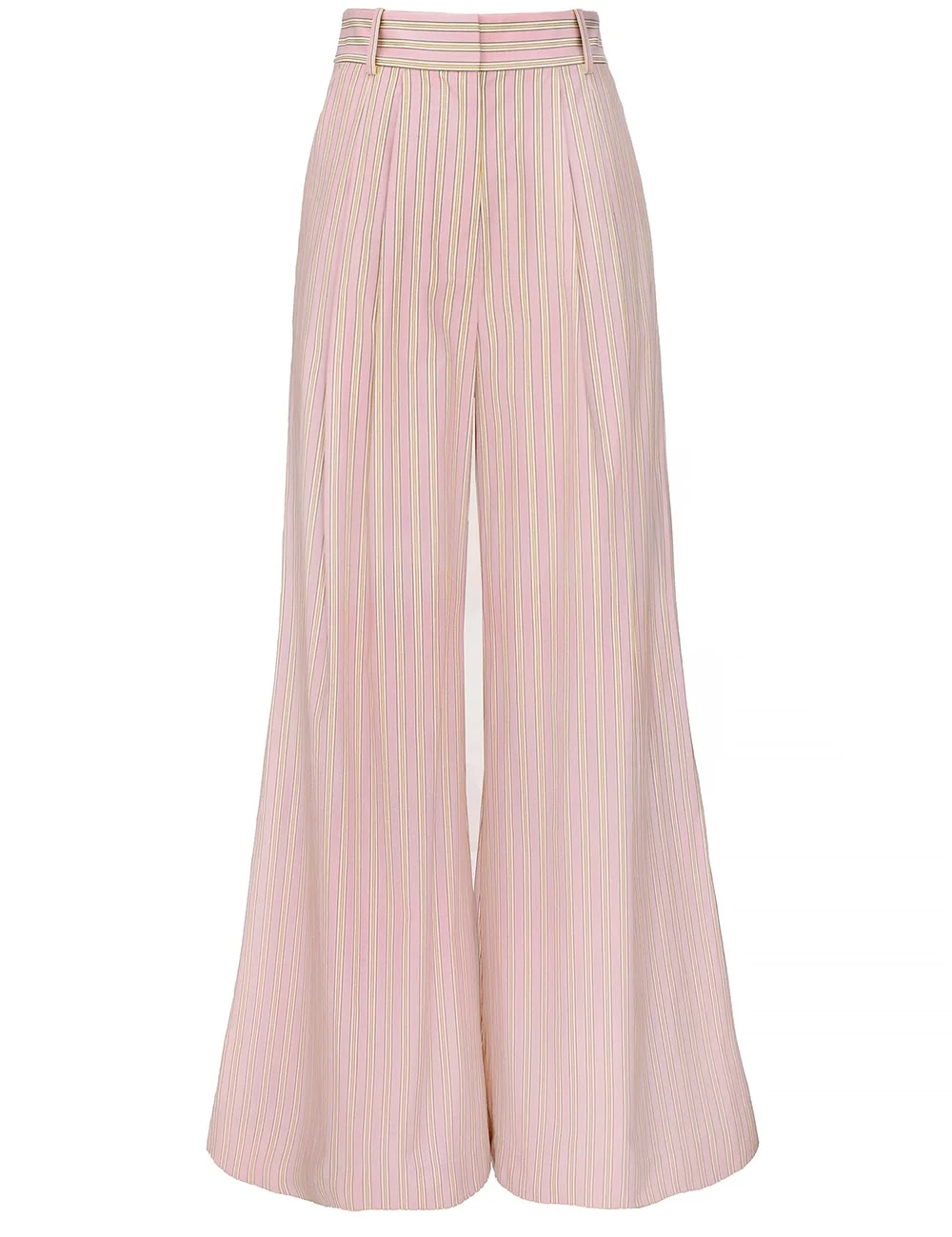 ITEM DETAILS The Stripe Wide Leg Pant in Pink Stripe from our Spring 2026 Collection, Kindred Spirit. A high-waisted pant featuring a fixed waistband with belt loops, concealed hook and bar closure, finished with side slant pockets and a wide hem. - High-rise, full-length pant - Centre front metal fly - Functional side pockets - Wide hem Style Code: 8398PS26R SIZE DETAILS 0P 0 1 2 3 4 Length 39 43.5 43.5 43.5 43.5 44 Waist 26 27 29 31.5 33 35.5 Hip 42.5 44 46.5 49 50.5 53 Inseam 29 32.5 32.5 32.5 32.5 32.5 Fitted at the waist, relaxed through the legs High-rise waist with a full-length leg Light-weight, non-stretchy fabric This garment fits true to size Available in size 0P, suited to clients who are under 5'3"/ 160cm Model is 5'9.5"/178 cm, bust size 32C/10C and wears a size 0 Item measurements are in inches CARE INSTRUCTIONS Main: 54% polyester, 46% cotton; pocketing: 100% cotton Dry clean only code f (hydrocarbon only); Remove any detachable trims prior to dry cleaning; Cover to protect trim; Iron in low temperature with protective cloth; Light steam only; Do not spot clean Always check the label or care card for specific care instructions.