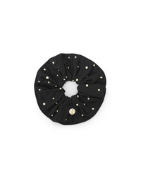 ITEM DETAILS The Studded Silk Scrunchie in Black from our Cruise 2026 Collection, Twisted Romance. A silk scrunchie featuring all-over stud embellishment. - Elasticated silk scrunchie - Stud detailing #html-body [data-pb-style=ASLUW1K]{flex-direction:0;background-position:left top;background-size:cover;background-repeat:no-repeat;background-attachment:scroll} THIS ITEM IS FINAL SALE AND NOT ELIGIBLE FOR RETURN Style Code: 6871XC26A1 SIZE DETAILS One size. CARE INSTRUCTIONS Main: 100% silk trim: aluminium Dry clean only code f (hydrocarbon only); Remove any detachable trims prior to dry cleaning; Cover to protect trim; Do not steam; Iron in low temperature with protective cloth; Do not spot clean Always check the label or care card for specific care instructions.