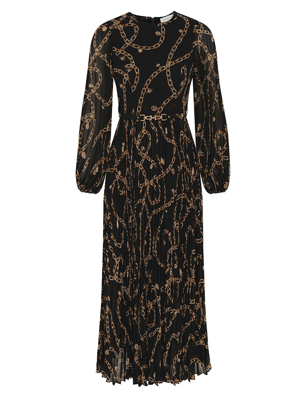 ITEM DETAILS The Sunray Long Sleeve Dress in Black Charms from our Fall 2025 Collection, Hypnotic. A long sleeve dress featuring a round neckline, removable waist belt and long billow sleeves with elasticated cuffs, finished with a pleated style skirt. - Midi length dress - Sunray pleated sleeves and skirt - Invisible zip closure at centre back - Heavily gathered - Comes with a removable self covered belt - Placement printed Style Code: 0581DF25R SIZE DETAILS 0P 0 1 2 3 4 Length 119 129 130 131 131 132 Bust 78 82 88 92 98 102 Waist 64 66 72 78 84 88 Sleeve 55 59 60 61 61 62 Designed to be fitted at the bust and waist, relaxed through the hips and legs This garment fits true to size Available in size 0P, suited to clients who are under 5'3"/ 160cm Model is 5'9.5"/178 cm, bust size 32C/10C and wears a size 0 Item measurements have been rounded to the nearest cm CARE INSTRUCTIONS Main: 100% recycled polyester; lining: 100% recycled polyester Dry clean only code f (hydrocarbon only); Remove any detachable trims prior to dry cleaning; Cover to protect trim; Do not iron; Do not steam; Do not spot clean Always check the label or care card for specific care instructions.