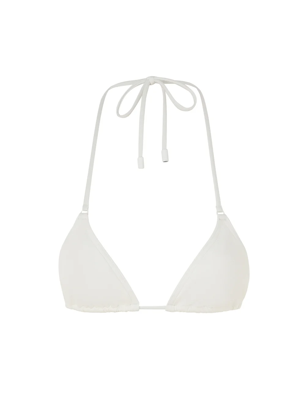 ITEM DETAILS The Swim Essentials Mini Tri Top in Ivory from our Summer Swim 2026 Collection. A triangle bikini top featuring a fully adjustable neck and under bust ties finished with toggle ends. - Triangle bra top with removable soft cups - Tie straps with toggle ends - Adjustable cup placement - Top only, pant sold separately Style Code: 1369WSS26 SIZE DETAILS This garment fits true to size Model is 5'10.5"/179 cm, bust size 34C/12C and wears a size 0 C/D CARE INSTRUCTIONS Main: 62% polyamide, 38% elastane; lining: 92% recycled nylon, 8% elastane Do not roll up when wet; Rinse immediately after use; Remove any detachable trims prior to washing; Cold hand wash separately with mild detergent, avoid fabric softener; Dry in shade; Do not bleach or iron; Do not tumble dry; Do not dry clean; Light colours may be transparent when wet; Avoid contact with sunscreens, oils, rough surfaces, and high temperature pools and spas; Always check the label or care card for specific care instructions.