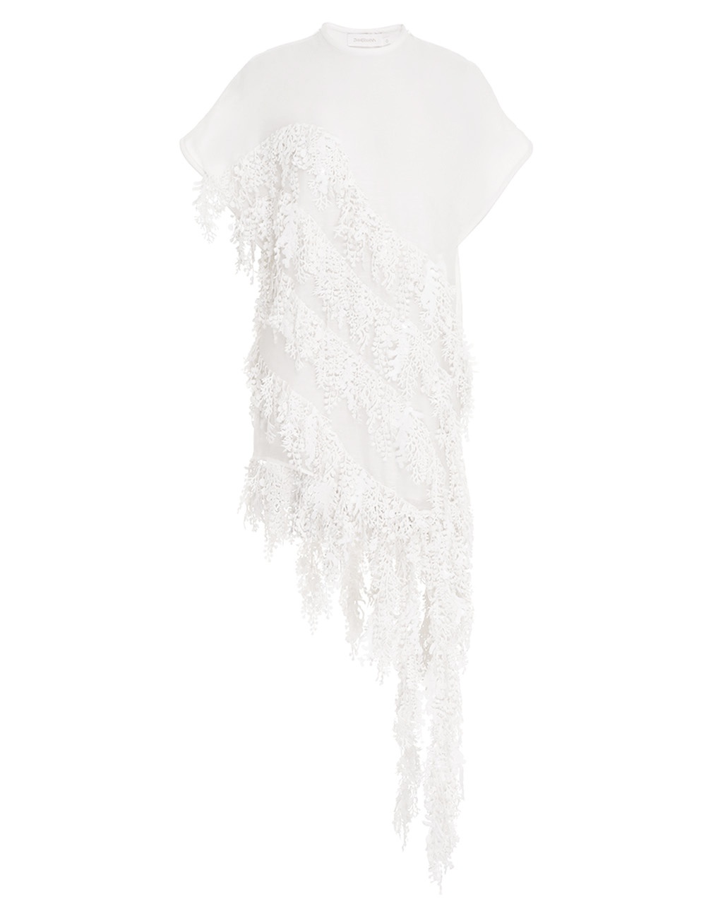 ITEM DETAILS The Tama Sequin Tunic Dress in Ivory from our Spring 2023 Collection, Wonderland. A silk linen organza tunic featuring wave sequin panels, with elongated trims falling from the hem. - Silk linen organza - Semi sheer - Bound edges - Asymmetric hem - Short sleeves - Invisible zips at shoulders Style Code: 7032DTAM STYLING The Tama Sequin Tunic Dress appeared in look 26 of the Spring 2023 Runway. Style the tunic with the Wonderland Denim Trouser, Embellished Sandal 85 and Trinity Earring Cuffs to complete the runway look. Wear this style with the Embellished Sandal 85 and Triangle Section Hoop Earrings by ZIMMERMANN SIZE DETAILS 0P 0 1 2 3 Length 81 81 85 86 88 Bust 104 108 114 118 124 Relaxed fit throughout. This garment fits true to size, we recommend you select your normal size. Available in size 0P, specially designed with petite proportions that are suited to clients who are under 5'3""/ 160cm. Our model is 5'9.5"" / 178 cm, bust size 32C/10C and is wearing a size 0. CARE INSTRUCTIONS Main: 52% linen 48% silk Lining: 100% cotton Exclusive of trims Dry clean only code f with protective bag Cool iron with protective cloth Light steam only Do not spot clean Turn garment inside out before dry cleaning Always check the garment care label for specific care instructions.
