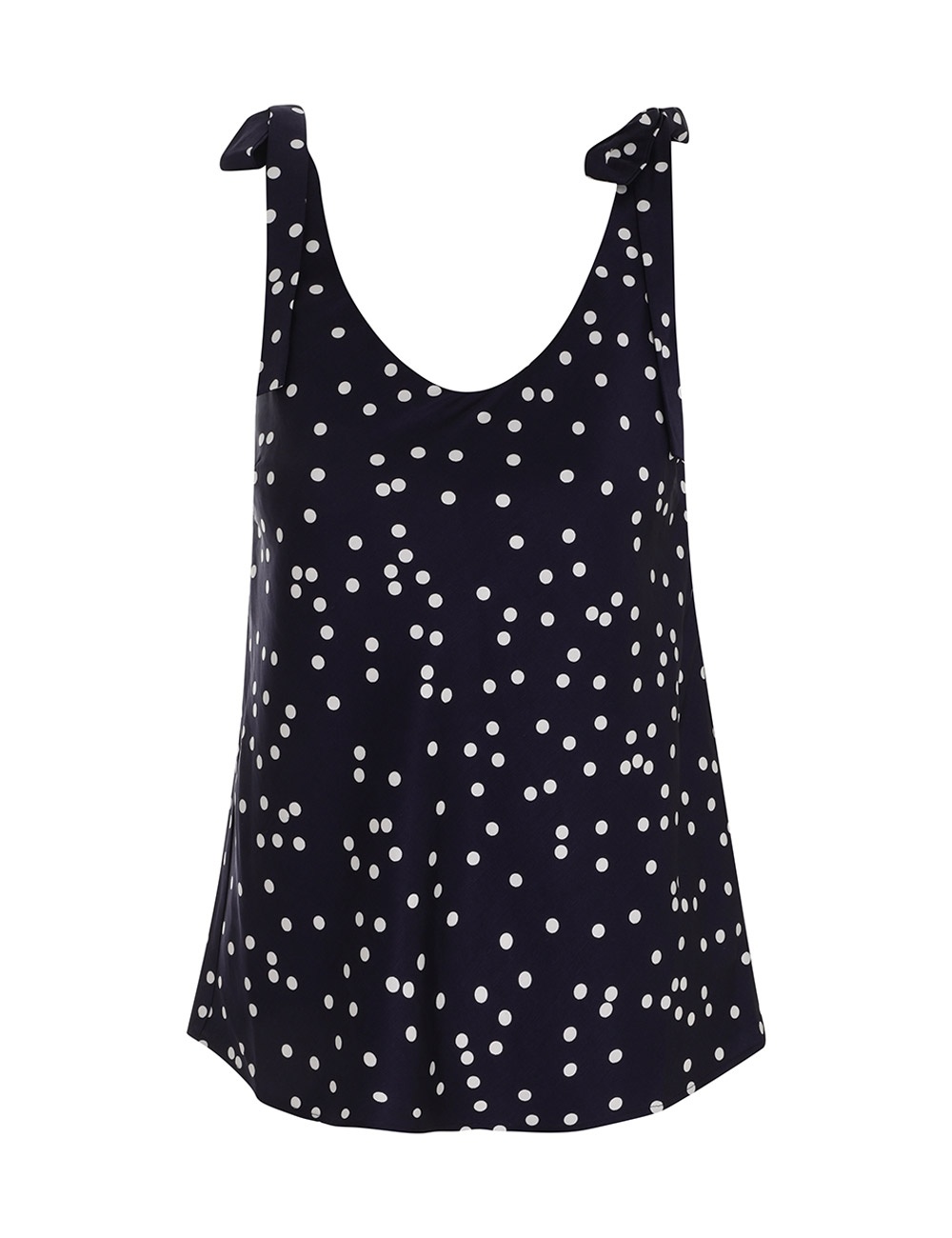 ITEM DETAILS The Tie Shoulder Cami in Navy Dot/Cream from our Spring 2023 Collection, Wonderland. A relaxed cami featuring a scoop neckline and self tie shoulder straps. - Relaxed cami - Scoop neckline - Self tie shoulder straps Style Code: 3542TRWON STYLING Style the Tie Shoulder Cami with the Midi Slip Skirt and Embellished Flat Sandal for your next lunch with friends. Wear this style with the Midi Slip Skirt, Twisted Towel Slingback 85 and Popcorn Chain Necklace by ZIMMERMANN SIZE DETAILS 0P 0 1 2 3 Length 32 35 35 35 35 Bust 79 84 89 94 99 This garment fits true to size, we recommend you select your normal size. Slip on style with adjustable shoulder straps for an easy fit. Available in size 0P, specially designed with petite proportions that are suited to clients who are under 5'3""/ 160cm. Our model is 5'9.5"" / 178 cm, bust size 32C/10C and is wearing a size 0. CARE INSTRUCTIONS 84% viscose 16% linen Exclusive of trims Dry clean only code p with protective bag Cool iron on reverse Do not spot clean Always check the garment care label for specific care instructions.