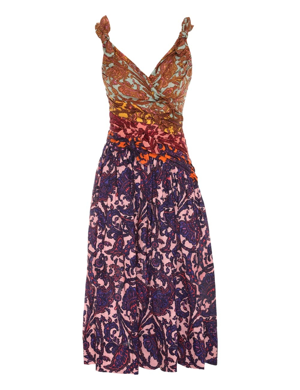 ITEM DETAILS The Tiggy Bow Midi Dress in Spliced Paisley from our Resort Swim 2023 Collection. A linen midi dress featuring a ruched bodice, v-neck and asymmetric waist, finished with a spliced paisley print and bow details throughout. - Linen midi dress - Spliced print - Bow details throughout - Elastic straps - Ruched bodice - Invisible zip closure Style Code: 5835DTIG STYLING Style the dress with the a strappy sandal and gold jewellery for your next event in the sun. Wear this style with the Five Charm Corded Necklace, Scuba Flat Sandal and Scuba Sandal 65 by ZIMMERMANN SIZE DETAILS 0P 0 1 2 3 4 Length 92 100 100 100 100 100 Bust 82 86 92 96 102 106 Waist 66 70 74 80 86 90 This style is a tight fit through the bust, those with a C cup or above may wish to take one size larger than your usual size. Available in size 0P, specially designed with petite proportions that are suited to clients who are under 5'3""/ 160cm. Our model is 5'9.5"" / 178 cm, bust size 32C/10C and is wearing a size 0. CARE INSTRUCTIONS Main: 100% linen Lining: 100% cotton Exclusive of trims Dry clean only code p Cool iron Do not spot clean Always check the garment care label for specific care instructions