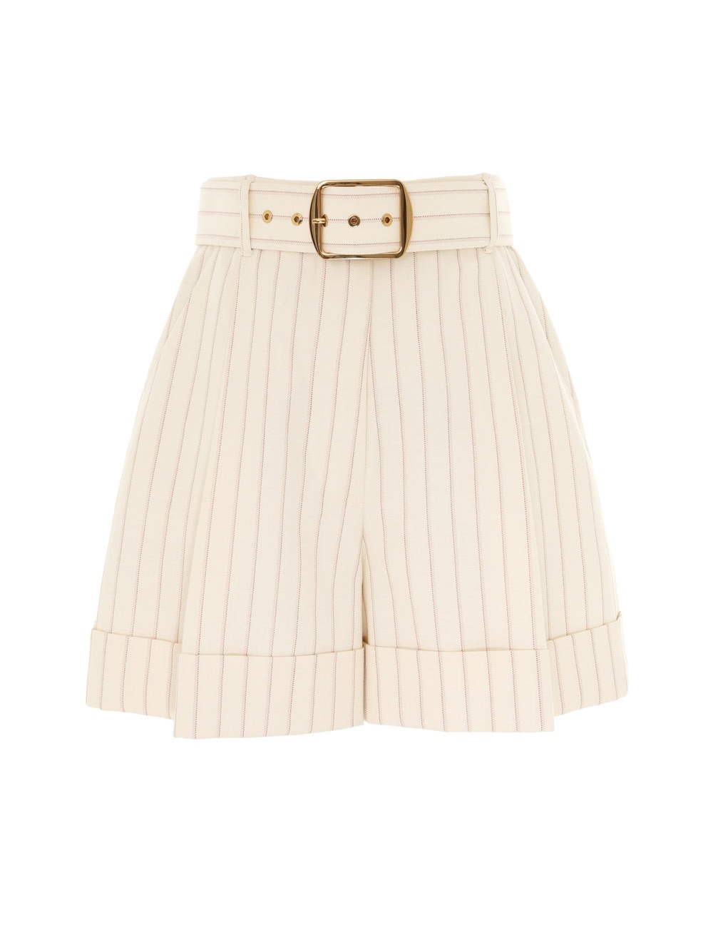 ITEM DETAILS The Tranquillity Long Line Short in Cream Pinstripe from our Spring 2024 Collection, Natura. A linen high waisted short featuring a wide waist band, angled pockets and a self covering belt. - Linen high waist short - Wide self turn up cuff - Belt loops and removable belt - Side seam pockets Style Code: 1003AS243 SIZE DETAILS 0P 0 1 2 3 Length 36 39 39 40 41 Waist 65 68 73 78 84 Fitted at the waist and hips This garment fits true to size Available in size 0P, suited to clients who are under 5'3"/ 160cm Model is 5'9.5"/178 cm, bust size 32C/10C and wears a size 0 Item measurements have been rounded to the nearest cm. CARE INSTRUCTIONS Main: 55% polyester 26% linen 18% viscose 1% elastane Lining: 75% viscose 25% silk Exclusive of trims Remove belt before dry cleaning Dry clean only code f (hydrocarbon) with protective bag Cool iron with protective cloth Light steam only Do not spot clean Turn garment inside out before dry cleaning Do not dry clean belt Always check the garment care label for specific care instructions.