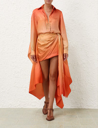 ITEM DETAILS The Tranquillity Scarf Mini Skirt in Red Fields from our Spring 2024 Collection, Natura. A silk mini skirt featuring a high-low silhouette, heavy gathering throughout, finished with a tie scarf detail on the left side. - Silk mini skirt - Tie scarf at front waist - Gathering and draping throughout - Invisible zip at centre back with hook and eye - Concealed self cover snap at back of the skirt Style Code: 1187SS243 SIZE DETAILS 0P 0 1 2 3 Length 88 101 101 101 101 Waist 67 71 76 81 86 Hip 90 96 101 106 111 Fitted though the waist and hips Light-weight, non-stretchy fabric This garment fits true to size Available in size 0P, suited to clients who are under 5'3"/ 160cm Model is 5'9.5"/178 cm, bust size 32C/10C and wears a size 0 Item measurements have been rounded to the nearest cm. CARE INSTRUCTIONS 100% silk Exclusive of trims Dry clean only code f with protective bag Cool iron with protective cloth Light steam only Do not spot clean Turn garment inside out before dry cleaning Always check the garment care label for specific care instructions.